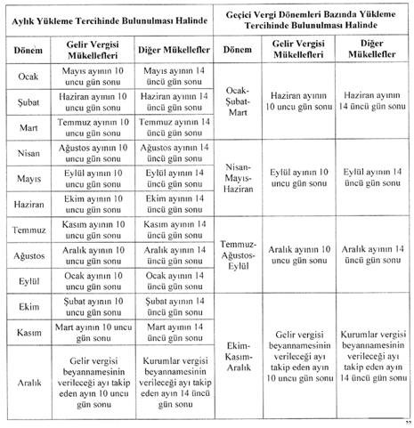 1- Gelir vergisi mükelleflerinde ilgili olduğu ayı takip eden dördüncü ayın 10 uncu günü sonuna kadar, diğer mükelleflerde ilgili olduğu ayı takip eden dördüncü ayın 14 üncü günü sonuna kadar,