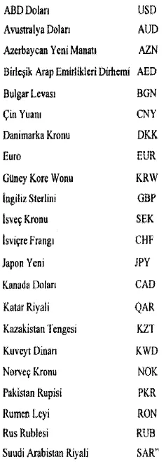 “MADDE 1 – Türkiye Cumhuriyet Merkez Bankasınca alım satım konusu yapılan dövizler aşağıda sayılmıştır.