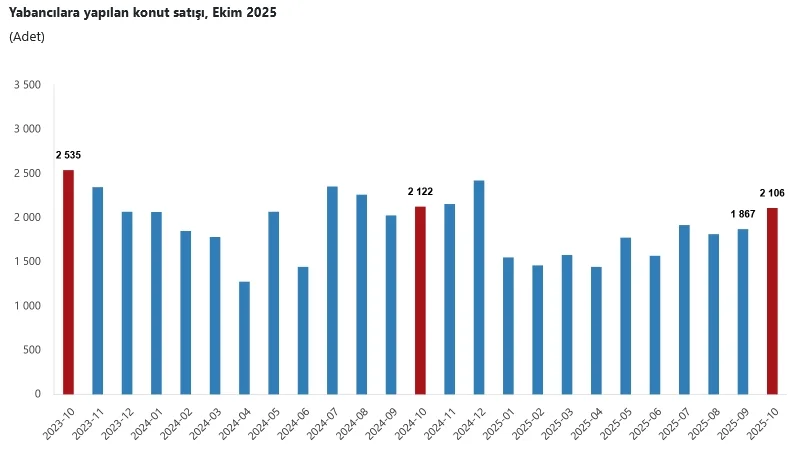 Yabancılara Ekim ayında 2 bin 106 konut satışı gerçekleşti