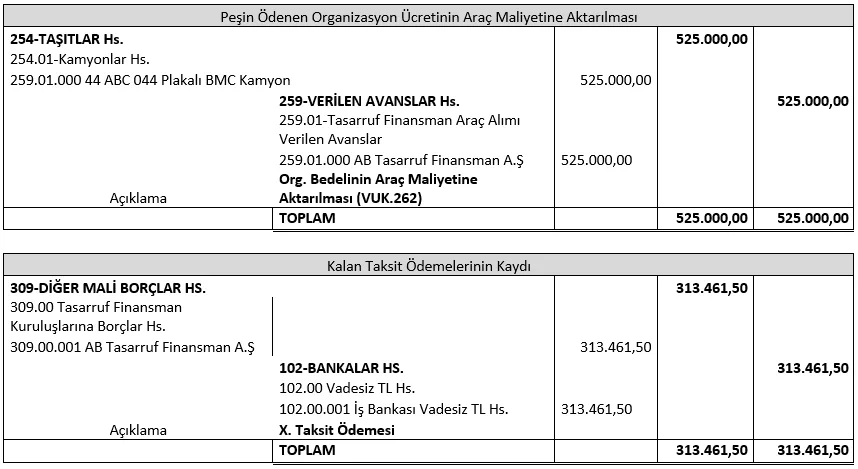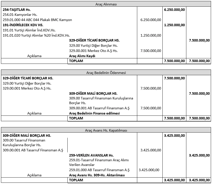 ABC Taşımacılık Ltd.Şti. ile XXX Tasarruf Finansman Şirketi arasında imzalanan sözleşmede yer alan bilgiler örnek kabul edilerek yapılmıştır.