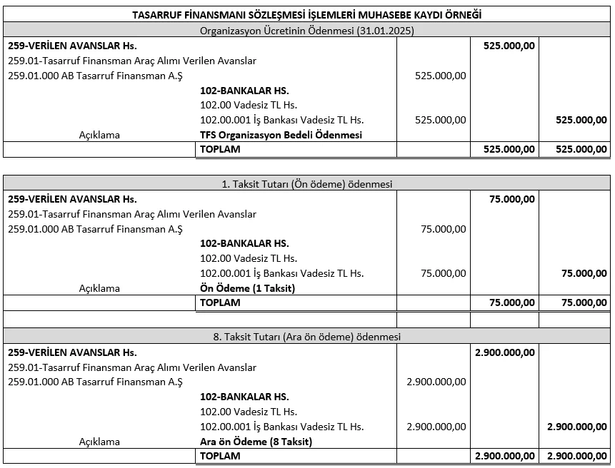 Vergi mükellefiyeti bulunan müşterilere tasarruf finansman sözleşmesi kapsamında sağlanan finansmanın muhasebe kayıtlarına alınması konusunun Vergi Usul Kanunu ve Muhasebe Sistemi Uygulama Genel Tebliği ile Tek Düzen Hesap Planı uygulaması yönüyle 300-Banka Kredileri ya da 309-Diğer Mali Borçlar hesaplarından hangisinin kullanılması konusunda yeniden değerlendirilmesinde fayda vardır.