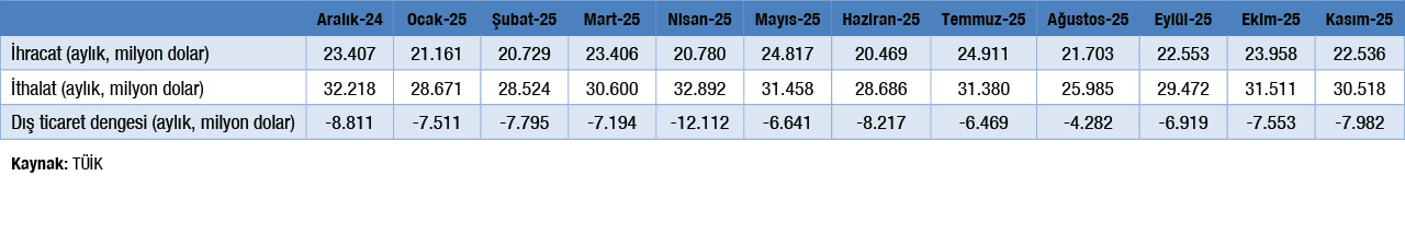 2025 Yılı Kasım Ayı Dış Ticaret Verileri Açıklandı