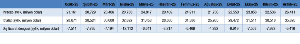 Temel Dış Ticaret Göstergeleri (Milyon Dolar)