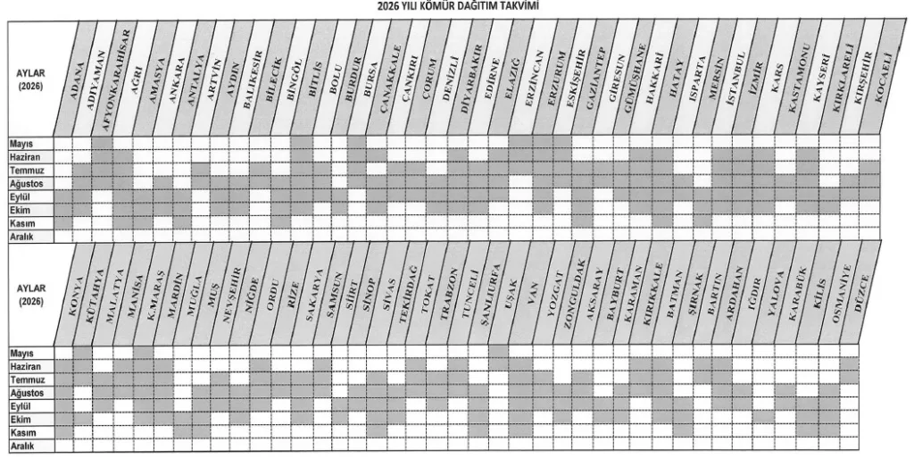 (6) 2026 yılında bu Karar kapsamında vakıflara yapılacak kömür sevkiyatları, TKİ ve TTK tarafından belirlenen sevkiyat programı dâhilinde yapılır. Sevkiyat programı, ekte yer alan dağıtım takvimine uygun olarak hazırlanır.