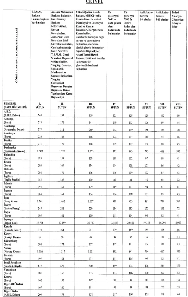 MADDE 1– (1) Yurtdışına veya yurtdışında iken başka bir yere, sürekli veya geçici bir görevle ya da tedavi amacıyla gönderilenlerin, gidiş ve dönüşleri ile tedavi ve geçici görevlendirme sürelerinde verilecek gündeliklerin yabancı para cinsinden tutarları ekli cetvelde gösterilmiştir.