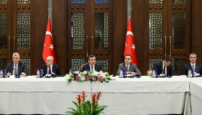 Cumhurbaşkanlığı Külliyesi’nde, Cumhurbaşkanı Yardımcısı Cevdet Yılmaz başkanlığında gerçekleştirilen toplantıya; Hazine ve Maliye Bakanı Mehmet Şimşek, Ticaret Bakanı Ömer Bolat ve Sanayi ve Teknoloji Bakanı Mehmet Fatih Kacır katıldı.